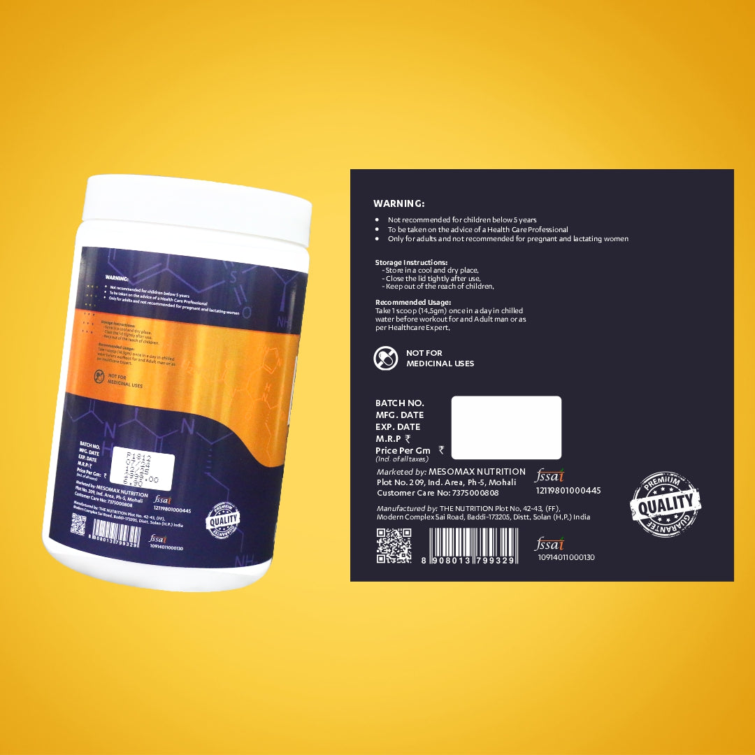 Mesomax Nutrition values quality and efficacy. Our EAA supplement is crafted with high-quality ingredients for purity and potency. Each serving delivers a precise blend of essential amino acids, including BCAAs, important for protein synthesis. Enjoy a refreshing taste and easy mixability, making EAA a convenient addition to your routine.